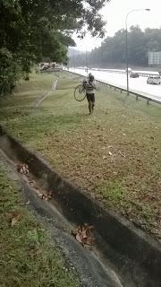 Sampai flyover seksyen 8 kami mengangkat basikal menyusuri tebing lebuhraya untuk naik keatas ala2 cyclocross le pulak..